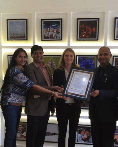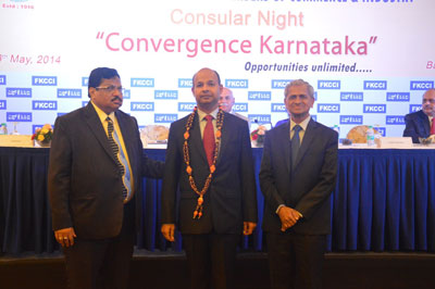 OUR MD MR. GOENKA WHO IS HON.CONSUL OF THE REPUBLIC OF ESTONIA BEING FELICITATED BY FEDERATION OF KARNATAKA CHAMBERS OF COMMERCE AND INDUSTRY IN BANGALORE AT THE MERIDIEN HOTEL