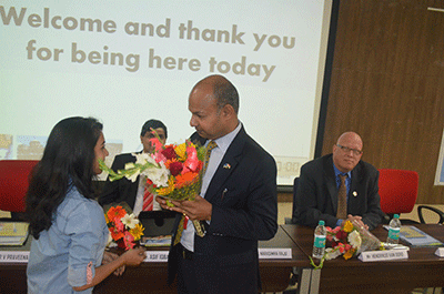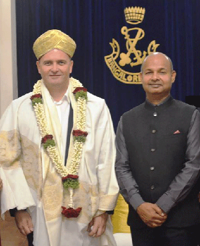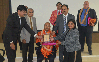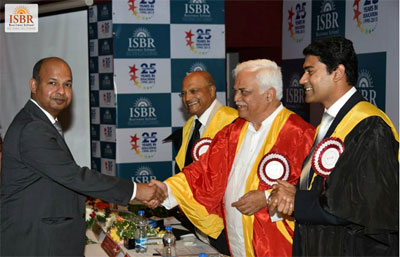 HONORARY CONSUL OF ESTONIA BEING FELICITATED BY MR. DESHPANDE ,MINISTER OF HIGHER EDUCATION AND TOURISM AT THE ANNUAL CONVOCATION OF ISBR.