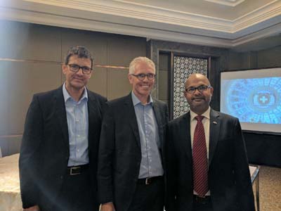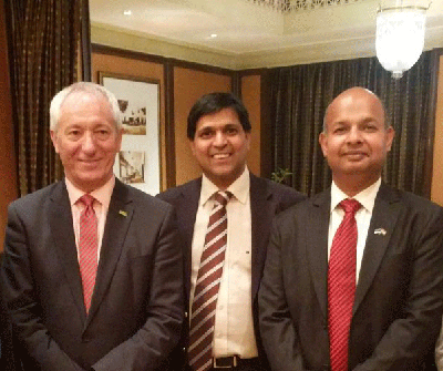 HONORARY CONSUL MR. PRAVIN KUMAR GOENKA WITH MR. BRUNO SAUTER , DEPUTY MINISTER OF ECONOMY AND MR. MARKUS TRABER DEPUTY MINISTER OF TRANSPORT , SWITZERLAND