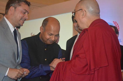 HONORARY CONSUL OF ESTONIA MR. PRAVIN GOENKA RECEIVING BLESSING FROM HIS HOLINESS THE DALAI LAMA.