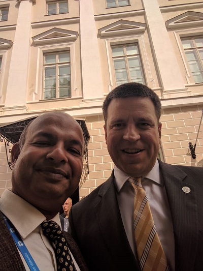 Honorary Consul Mr. Pravin Kumar Goenka with Honourable Prime Minister of Estonia Mr. Juri Ratas.