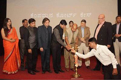 HONORARY CONSUL OF ESTONIA MR. PRAVIN KUMAR GOENKA LIGHTING THE LAMP AT THE INAUGRATION OF A FILM FESTIVAL.